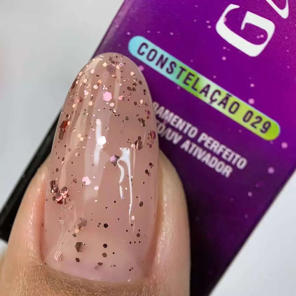Sua textura fluida facilita a aplicação, proporcionando cobertura uniforme e acabamento liso, sem bolhas ou imperfeições. Ideal para finalização de unhas decoradas, esmaltes comuns ou técnicas de nail art, o Selante Galaxy Collection 029 Constelação adiciona um toque de sofisticação com efeito luminoso inspirado em constelações.